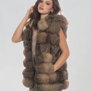 Smanicato con cappuccio in vera pelliccia di volpe nera | Modello ASSMN